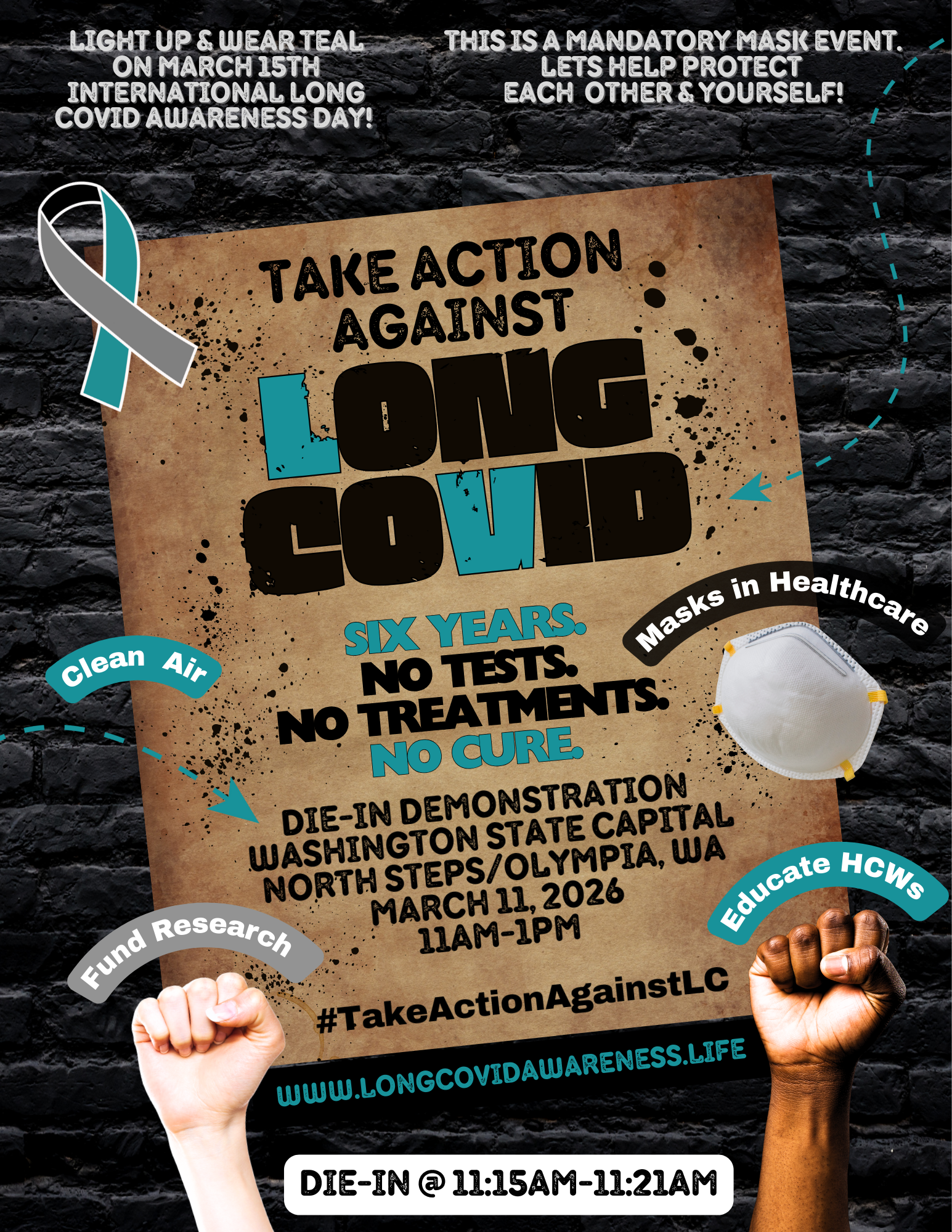 ​Patients, allies, organizations, anyone who wants to stand up for the need for clean air in public spaces, masking in healthcare and represent for all those with Long Covid who are too sick to travel or attend in person.
